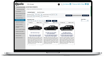 According to Google, a payment is the most requested piece of information during ready-to-by-moments. Advertising payments provides price transparency and delivers 4x the engagement. Apollo’s offer management platform calculates to-the-penny payments on all new and pre-owned inventory, generating unique cash, lease and finance offers on every vehicle.