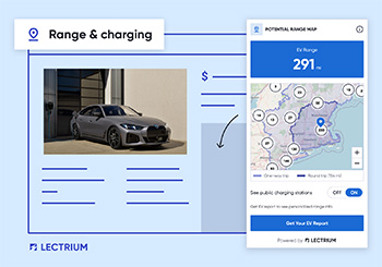 Lectrium’s Electrified Vehicle merchandising tools turn shopper curiosity into confident purchases. From real-world range mapping to transparent savings breakdowns, each tool answers key customer questions directly on Vehicle Detail Pages. Shoppers can plan routes from their address, find nearby compatible chargers, see VIN-accurate range for New & Used EVs, and understand total ownership costs in just a few clicks.