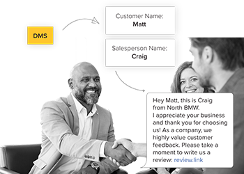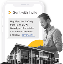 Close deals and ROs in your DMS and we will take care of the rest. Our software directly integrates with your DMS, sending invites automatically - creating a highly effective and almost entirely hands-off invitation process. We guide your customers from request to review in only 3 steps. Reach customers where they are most engaged with direct SMS communications.