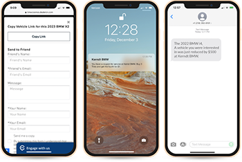 Entice your customers to send leads and re-engage in meaningful ways across your website. Shoppers can quickly share vehicles via text with friends or family, download coupons or loyalty offers to their Google or Apple Wallet and request a price drop alert when there is a change in the vehicle’s price.