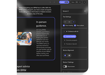Create pages and make instant changes to your website — no training manual required. Use AI to create text content based on information it knows about your dealership, inventory, and more.
